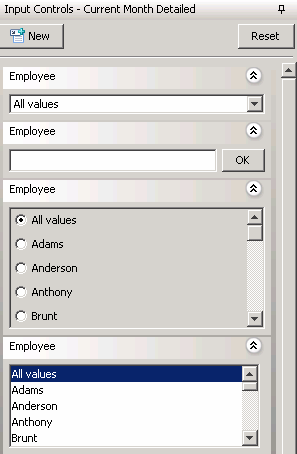 Input controls are a feature that BusinessObjects introduced in version 3.1, Service Pack 2, that allow users to interact with report and charts through widgets. Users can choose between single option and multiple option widgets such as text fields, radio buttons, and list boxes. The out-of-the-box concept for input controls is to simply restrict datasets without the need to refresh the data, and there are also ways to expand on this functionality.