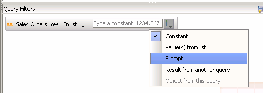 As previously mentioned, input controls only became available in BusinessObjects XI 3.1, Service Pack 2, so this option may not be possible for some readers. In such cases, let’s look at another method.