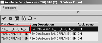 Next, select the DataSource to attach to the InfoSource. In Figure 11, the DataSource is 70D_SD_C03_TD_AE (the extract DataSource for the 0D_SD_ C03_TD_AE PSA). The system then asks for confirmation, so click on the Yes button.
