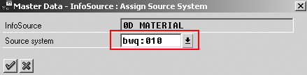 Step 3. Attach the BWQ DataSource to the InfoObject’s InfoSource. Attaching the new DataSource from BW QA to the InfoSource in BW development allows you to load data from one system to the other. From Administrator Workbench in the BW development system, go to the InfoSources tab. Locate the 0D_ MATERIAL InfoSource. Right-click and choose Assign DataSource…. Select the source system that supplies the data. In this example it’s my BW QA system (bwq:010), but in your scenario it is most likely to be your BW production system (Figure 3). The system then displays a list of available DataSources. Select the appropriate DataSource for the type of master data you intend to load (attributes, texts, or hierarchies). Figure 4 illustrates loading master data attributes, so select the 80D_MATERIALM DataSource. The system then asks you to save this DataSource assignment, so click on the Yes button.