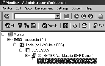 For this scenario I’ll again use SAP’s demo content, this time from the 0D_SD_ O01 ODS into the 0D_SD_C03 InfoCube. The data flow is shown in Figure 7.
