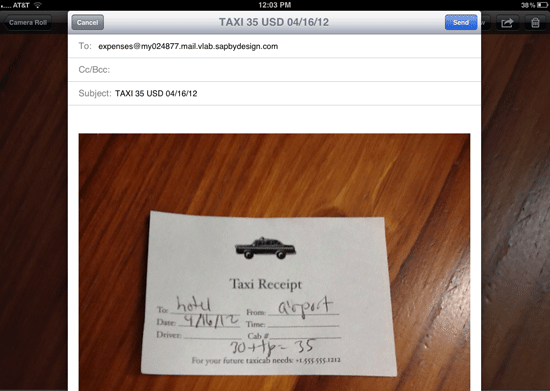 You can send the photo of the receipt from your smartphone to the SAP Travel OnDemand system without an app