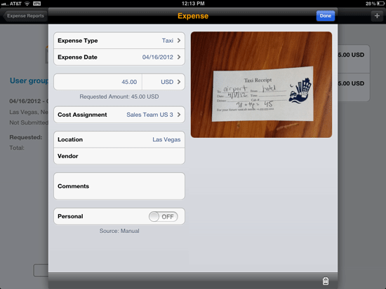 Create a Line Item in an Expense Report with the iPad