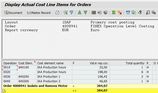 This results in the report layout shown in Figure 15, in which you see the line items by operation in the order report, provide a degree of transparency in order reporting that many users have searched for in vain in the past.