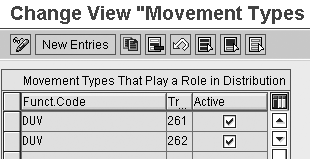 Enter function code numbers of the relevant movement types in table TDUVN156