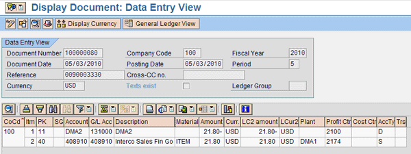 The RD04 output type generates the INVOIC IDoc from returns billing in step 6. This INVOIC IDoc creates the vendor invoice document in the receiving company code. The postings in the accounting document for internal billing and internal vendor invoice for the return STO shown in Figures 19 and 20 are simply reverses of those created in the original STO process shown in Figures 9 and 10.