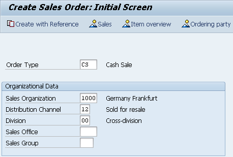 The initial screen for creating a sales order
