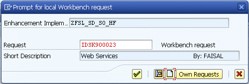 Step 6. In the next screen, enter the name in the Package field (e.g., ZFSL) of the package in which you want to save this enhancement. Click the save icon. Place this object in the same request created in Figure 16.