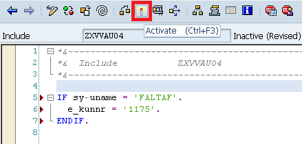 Step 9. Activate the new enhancement. Add the code shown in Figure 48 and activate the enhancement using the Enhancements button on the toolbar.
