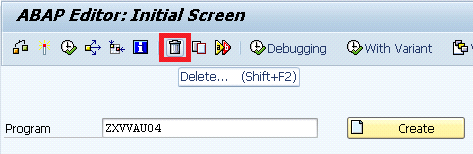 Step 1. Open the program in display mode. Open program FV45PF0U in display mode using transaction code SE80 or SE38 (Figure 63). In this example transaction SE38 is used.