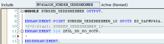 Enhancement point MV45AO0K_KUNDEN_UEBERNEHMEN