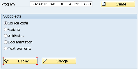 Step 1. Open the program in display mode. Open program MV45AF0T_TAXI_INITIALIZE_CARRI in display mode using transaction code SE80 or SE38 (Figure 51). In this example transaction SE38 is used.