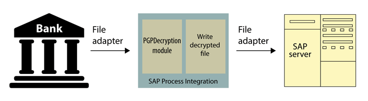 SAP ERP Central Component (ECC) does not handle encryption and you certainly cannot use transaction code FF.5 to handle encrypted bank statements because this transaction is designed to match information in the file with the one in the ECC database, and obviously, if the one in the file was encrypted, it wouldn’t match the one in ECC. However, in SAP Process Integration 7.11 Support Package 08 or higher, SAP provides PGPEncryption and PGPDecryption modules. With this functionality, you can obtain your encryption keys from the bank, have your own internal key, and retrieve, decrypt, and write the decrypted file.