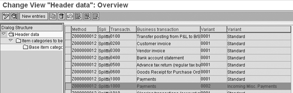 Document splitting is a new feature in the new General Ledger that enables you to create balanced financial statements for entities such as profit centers and segments. The predefined splitting method covers the majority of business scenarios but some cases still require you to go beyond the standard splitting functions. With document splitting activated, the system splits accounting line items according to splitting rules.