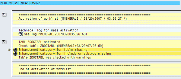 The activation function generates an activation log (Figure 21). You should not see any errors listed in this log. If you do see errors, you can typically ignore them because they are informational in nature and typically do not affect the behavior of the Data Dictionary objects. Review the log and make sure that any warnings are not in conflict with your project Data Dictionary standards.