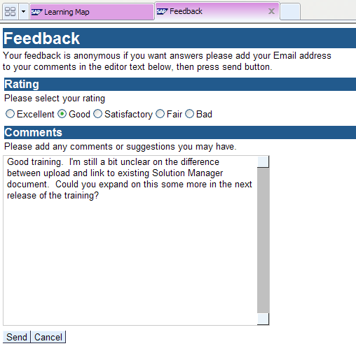 The facts that Solution Manager generates Learning Maps to be accessible in a standard Web browser and that you don’t have to train anyone on using a learning management system make the functionality valuable. I haven’t covered every feature in this article, but the content that I provided enables you to get started with this functionality and begin using Learning Maps on your own.