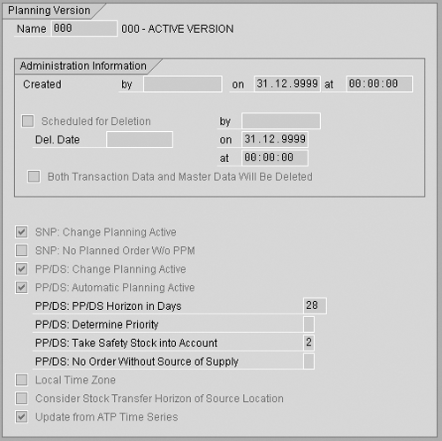 planning version (menu path Master Data>Planning Version