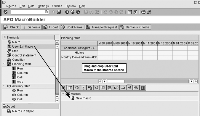 To figure out this difference, you cannot use a standard macro, so we designed a macro with a user exit to create macro functions unavailable with standard macros. (For more information about standard macros, refer to the sidebar, “Two Macro Books in APO.”) In user exit macros, you can code user exit answers to complex requirements (such as an include) as needed.