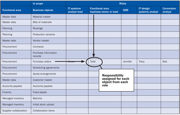 Be prudent in selecting the resources. Identify experienced users from the user community because they can bring their hands-on experience in solving actual data problems they face in their business process to the table. This experience is not only helpful as a design input but also valuable in data migrations as you have an opportunity to enrich the missing data by creating data elements not present in the legacy system as required by its business process. It’s always a good idea to pick the SME from the user community for a given functional area — for example, a lead buyer as a procurement SME, a lead commodity manager as a contract management SME, or a senior planner as a planning SME. Now I’ll look more specifically at the roles involved.