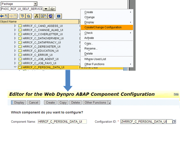 As opposed to the configuration carried out in the IMG, you can carry out configuration of Web Dynpro ABAP components and applications using transaction SE80. This ability provides a lot of flexibility in tailoring the candidate screens based on user requirements. It also does away with the need for development work.