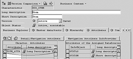 ZITM_ATTR must be assigned before it acts as the display attribute for the characteristic 0CS_ITEM. Originally, 0CS_ITEM had no attributes, so you must set the corresponding check box in the Master data/texts tab to create a master data table, which allows access to the Attributes tab (Figure 6).