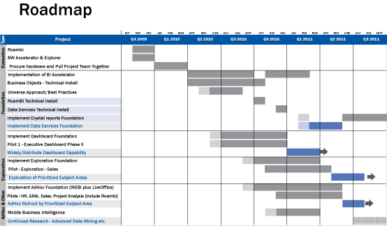 “We had SAP, Hewlett-Packard, and Roambi come on site in November and December 2009 before we committed to any purchases. We wanted it all proven,” Duly recalls. “So we created an executive dashboard, a mobile executive dashboard using Roambi, and we had the BW Accelerator and Explorer turned on, all in a month and half. Along the way, we kicked the tires of Crystal Reports, Web Intelligence (WebI), the idea of universes, and LiveOffice.
