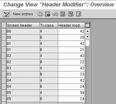 Step 2. Assign a header modifier (V_T588I). In this country-specific step, you assign a header modifier (basically, the number of a specific header definition) to each combination of header and transaction class. Transaction class is used to indicate where data is stored in the database based on the type of person being maintained. Transaction class A refers to PA data elements and transaction class B indicates recruitment elements for applicant processes. By using a transaction class, you can define different headers for applicants and for employees. This distinction between applicant headers and employee headers is helpful, especially if you want to display different fields that apply to one or the other — for example, applicant status. For the configuration of your new header (Figure 2), assign a Header mod. of 99 to header 05 for Trclass A. In this example, you’ll use an existing Header mod. of 24 for Trclass B.