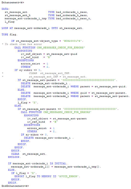 - Step 1. Read the line items in internal table message_ext-orderadm_i and check if that line item has any errors by calling function module CRM_MESSAGES_CHECK_FOR_ERRORS.