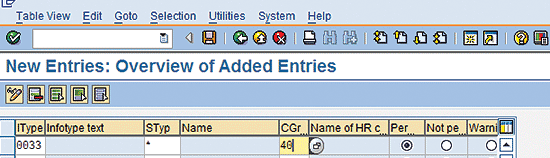Infotype 0033 new entries view