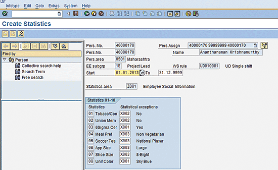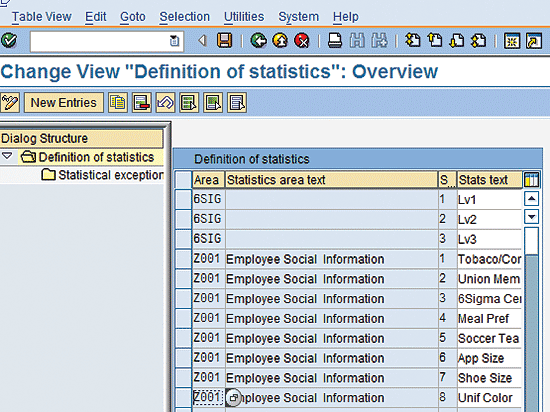 Before I begin, you must understand how to use infotype 0033 (statistics). Infotype 0033 is the basis for the simple and effective support of statistics reports. In this infotype, as recommended by SAP, you can store internal data or the personal attributes of employees. Some of the subtypes are defined by the system to address a few country-specific requirements; for example, subtype 1, which is related to SAP Payroll in Germany. You should not delete these entries when creating your own entries.