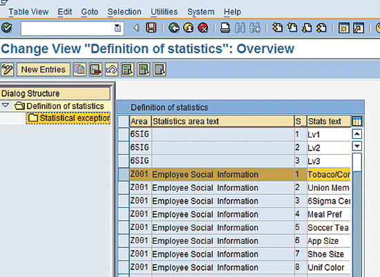 Infotype 0033 (statistics) has not been commonly used in many implementations, which makes it an ideal space to store more detailed employee social information. This type of information helps companies to understand various social and cultural aspects of their employees.