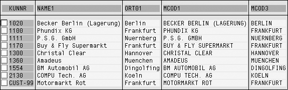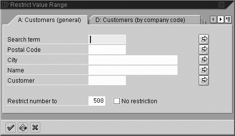 Collective search help: groups several elementary search helps, providing the user with several alternative methods of searching for the required data. An example of an elementary search help is DEBIA (Figure 1). Customers (general) is displayed as part of customer master collective search help DEBI and second elementary search help DEBID. You can see customers (by company code) on the second tab.