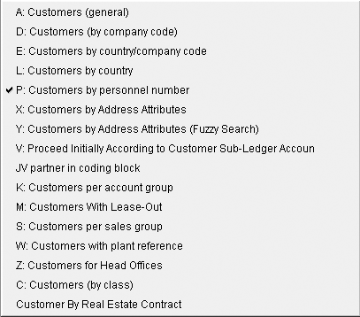 (e.g., XD03) and click on the choose from pick list icon next to the customer field. The new search help