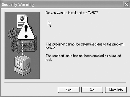 SAP recommended the use of SAPGUI for HTML for running reports via the Web. What we did not realize in the beginning was that users could not download or print the reports unless they had an SAP certificate installed on their PC. (Some other vendor certificates also work.) This self-extracting certificate can be downloaded from SAP’s Web site at https://service.sap.com/tcsrootcert ahead of time or when the Workstation Software pop-up Security Warning message appears (Figure 7).