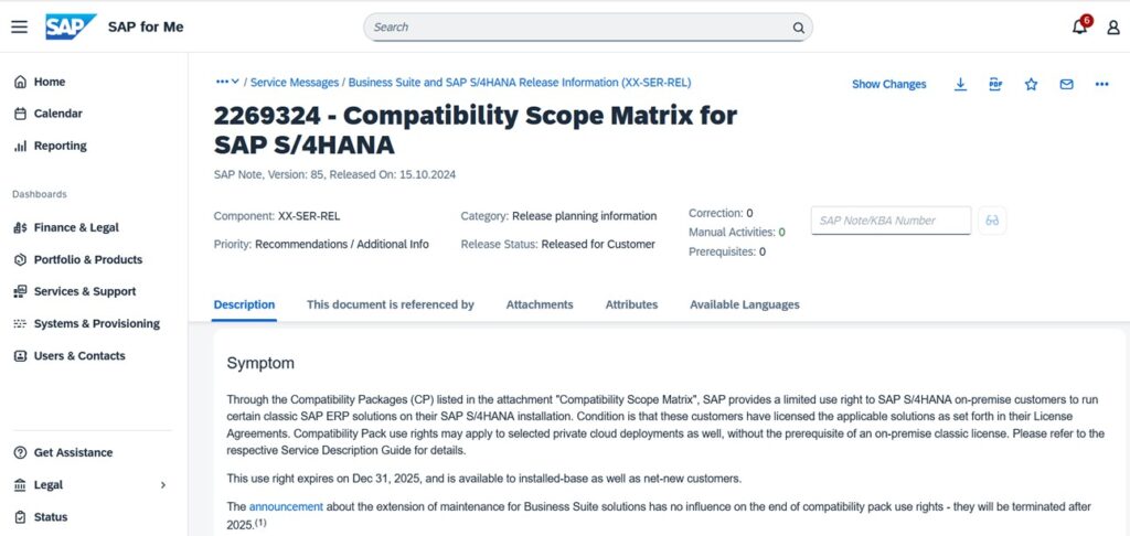 - Compatibility Scope use rights expire automatically on December 31, 2025 for all SAP S/4HANA versions independent from their release date.