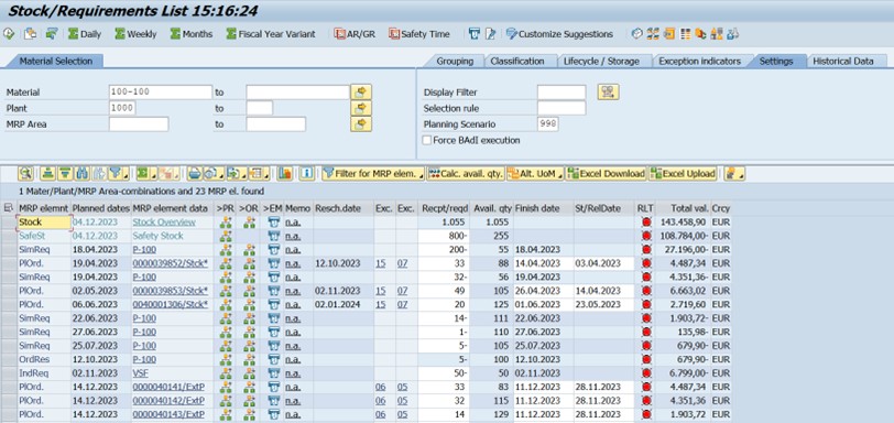 MRP lists were intended for checking the MRP result. MRP lists were used to find materials with issues quickly. MRP lists are snapshots of the material supply and demand situation at the time of the last MRP run.