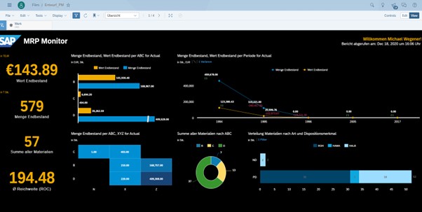 With HANA, stock/requirements lists can be read with high speed. The MRP apps determine materials with issues in real-time.