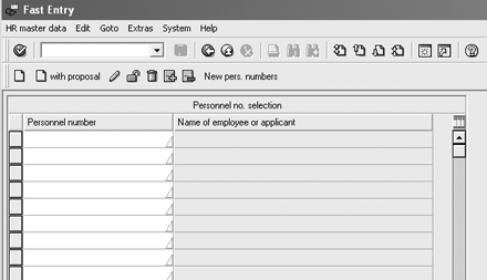 - Enter in fast entry screen: Using this option, you can enter personnel numbers on the same screen where you record your infotype field values (Figure 2).