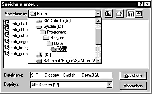I suppose any of your computer’s file directories or folders is okay. But, actually, when you ran the Babylon installation program, it created a predefined directory path for you. It will be something similar to what is shown in Figure 6 (excuse the German text!). It is probably a good idea to use that pre-defined path for storing your Babylon downloads.