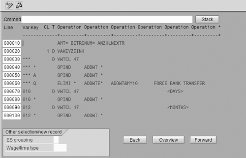 An underlying principle is that wage types are only moved to the RT when you are finished with them. It is much easier to manipulate and change wage types in the IT than in the RT. Several standard rules move wage types to the RT,2 as you saw in Table 1.