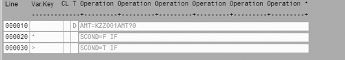 Suppose that several rules together perform a calculation, and you need to make a date-effective change to them. This is a perfect fit for using the IF function with a custom rule. You can use the existing constant ZZ001 for this example and create a new rule, ZUAC, that will be used by the IF function. In Figure 4, you can see I set the amount field equal to constant ZZ001. In line 20, the value of ZZ001 is not greater than zero, so you use operation SCOND to set the true/false condition of the IF function to false. In line 30, it is greater than zero, so you set the true/false condition to true.