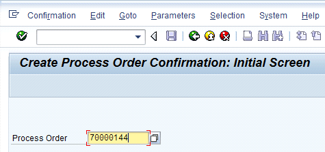 The confirmation is the process to declare the quantity against the process order that has been produced. No special process is needed for confirmation of a process order having a co-product, but it exists for a by-product. To enter the confirmation of a process order of a main material that has a by-product use SAP menu path Logistics > Production – Process > Process Order > Confirmation > Enter for Order or use transaction code CORK. Enter the process order number and press Enter.