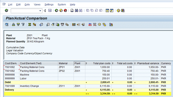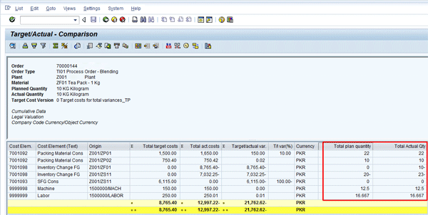 In view of the fact that production planning is completely integrated with product costing, all planned costs are calculated at the time of creation and release of a process order including the cost of a main material having a co-product or by-product. These planned costs are then updated with actual costs in the process order when necessary transactional data like goods issuance, confirmation and goods receipts are undertaken. All planned versus actual costs are subsequently available for comparison and analysis purposes.