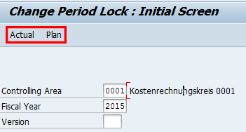 Execute transaction code OKP1 and follow menu path Accounting > Controlling > Cost Element Accounting > Environment > Period Lock. In the selection screen that appears (Figure 1), you must choose between Actual and Plan data. The Actual and Plan buttons are at the top of the screen. You also need to enter data in the Controlling Area and Fiscal Year fields. When you are entering plan data, you must also enter data in the Version field. When you finish entering the selection data, click either the Actual or the Plan button.