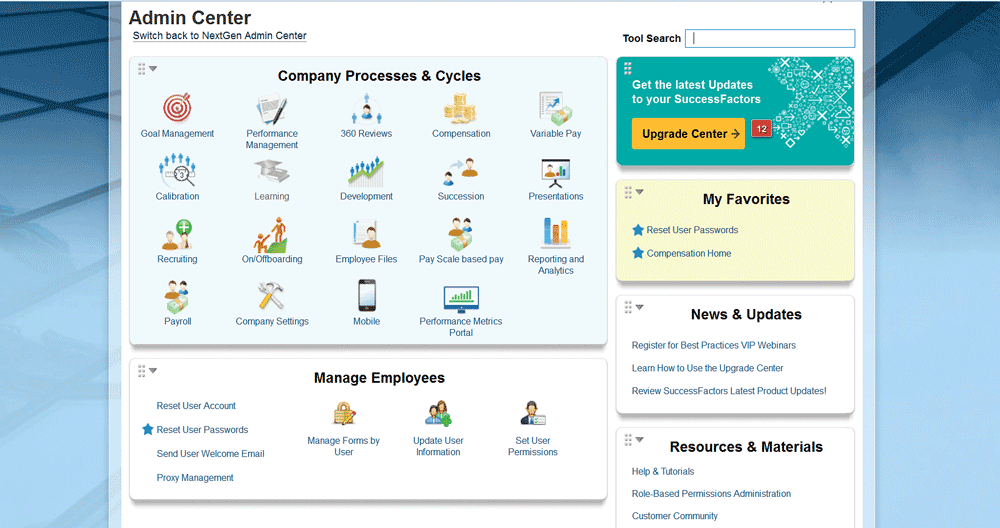 Select Admin Center on the SuccessFactors Home page
