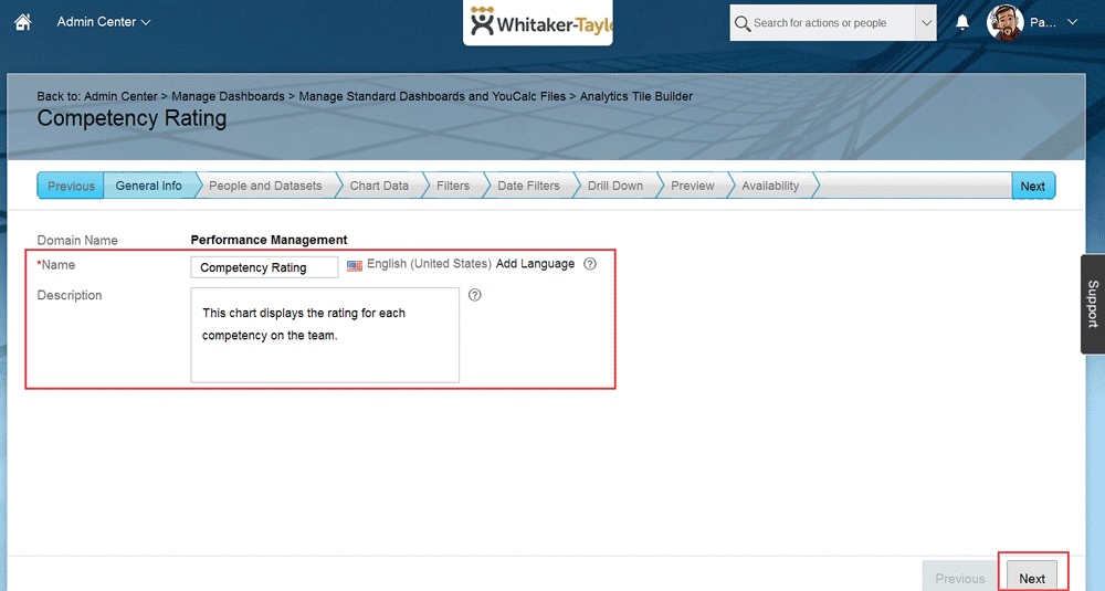 Figure 9), provide a name and a description for the new tile and click the Next button. (As a best practice, it’s always a good idea to provide a unique description for each new custom tile.)