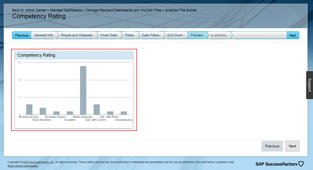 The drill-down configuration (in tiles for the data that is to be displayed) is very important. As discussed earlier, this data is presented in a graph; however, once you click on the graph you can see details of the employees’ data for all the employees who are included in the report.