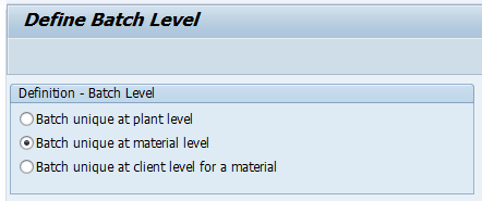 In the next screen (Figure 2) select the Batch unique at material level radio button and click the save icon.
