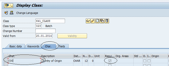 Batch management is linked with classification, but can be used without classification, too. You can create several classes for each of the applications that require specific characteristic values in a batch. These class groupings could be for finished goods specifications, inspection of products, process order results recording, inspection results recording, or storage conditions in a warehouse. You assign these classes to the material master. When the batch is created for the material, the class assignment makes it possible for the classification data to be available for batch management. The characteristics for materials managed in batches provide information for any kind of evaluations on particular attributes of batches, whether in connection with quality issues, production issues, or complaints. We make use of this batch management functionality to capture the COO of the material.