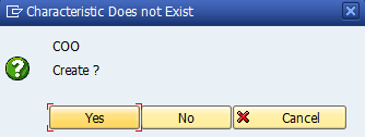 If the COO is not maintained as a characteristic in the system, when you enter the COO in the Char. tab, the system asks for a confirmation to create the characteristic (Figure 8). Click the Yes button.